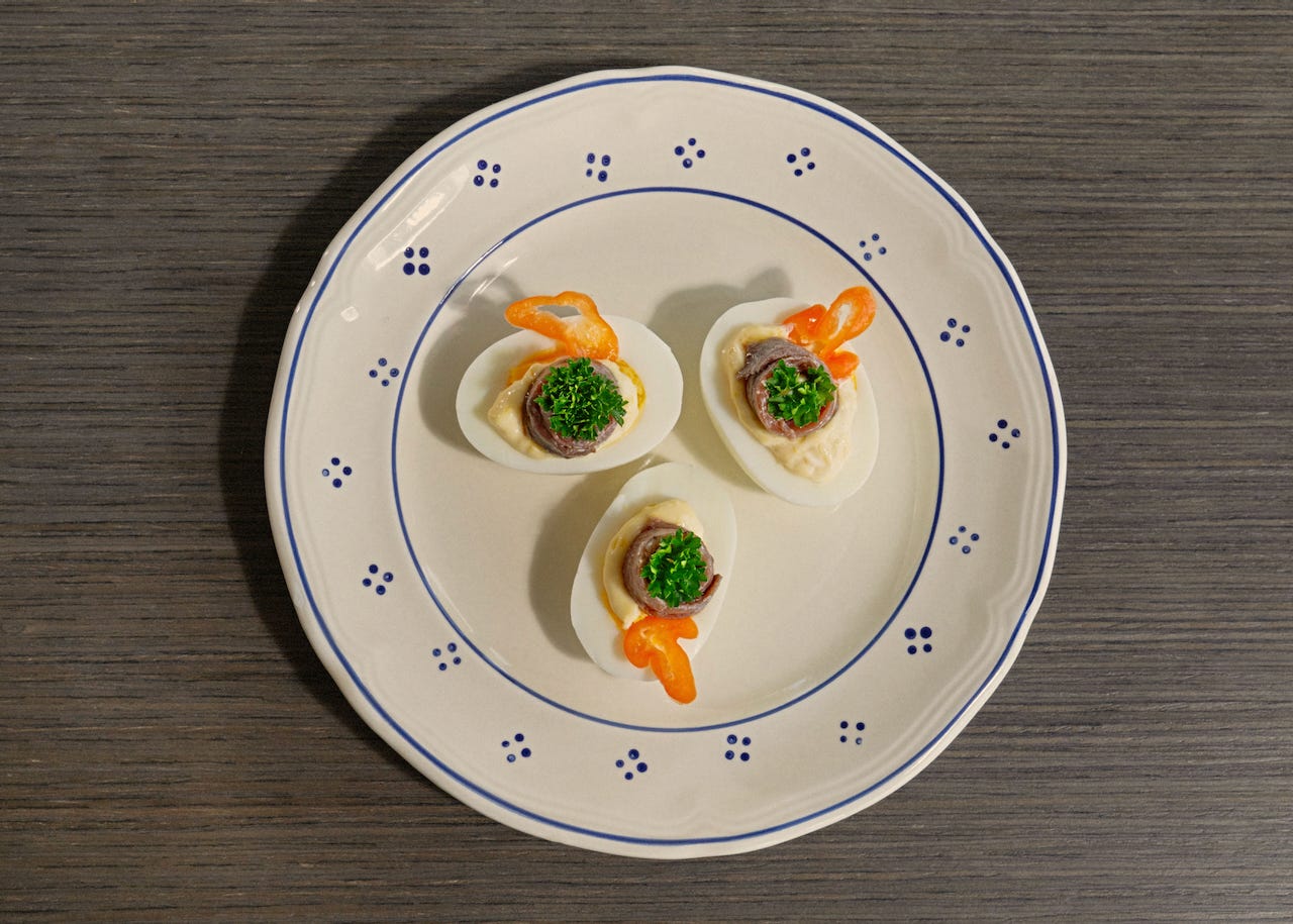For The Bittman Project, I shared recipes for what I’ve been calling “angeled” eggs, which turn jammy eggs a little devilish by adding small dollops of creamy things and all of your other favorite go-to garnishes. The eggs take seven minutes to cook, and the garnishes don’t have to be too complicated to be crowd pleasers. No food processor, no separating yolks from whites, no piping bags to wrestle with. Just joy. Next up will be three recipes for vegetable scraps and making the most of them in unexpected but undeniably delicious ways. Stay tuned.